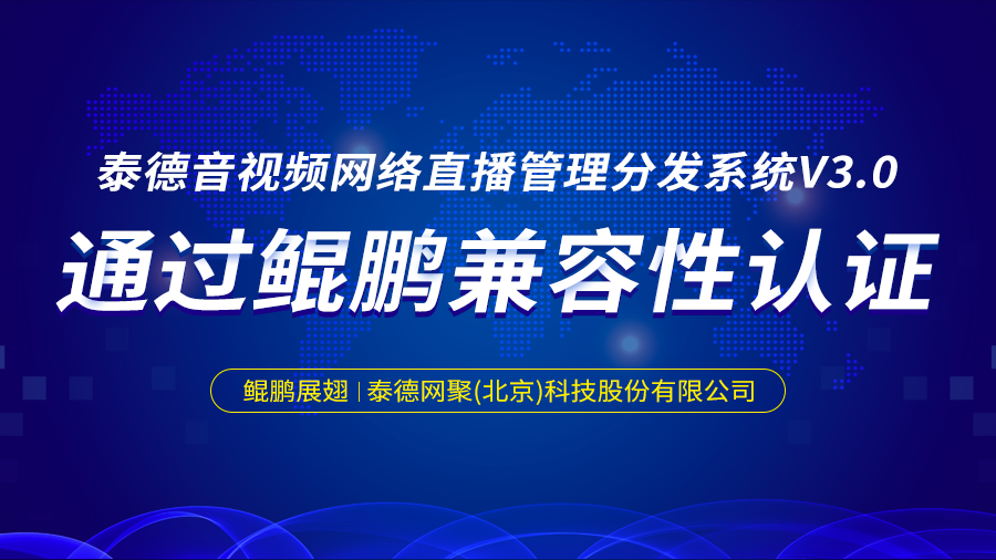 泰德网聚(北京)科技股份有限公司泰德音视频网络直播管理分发系统V3.0通过鲲鹏兼容性认证
