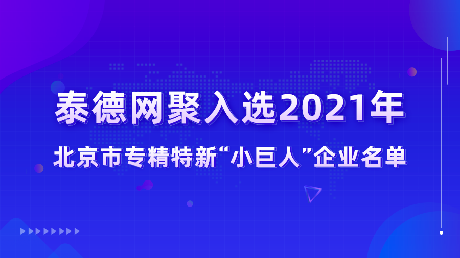 近日,北京市经济和信息化局发布了《关于对2021年度第二批拟认定北京市专精特新“小巨人”企业名单进行公示的通知》,泰德网聚(北京)科技股份有限公司通过申报和评审,成功入选北京市专精特新“小巨人”企业名单。