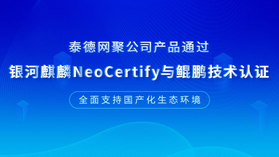近日,由泰德网聚自主研发的“泰德数据中台服务系统”和“泰德智慧媒体中台”产品分别通过银河麒麟NeoCertify认证与华为鲲鹏技术认证。认证期间,技术人员与麒麟软件公司和鲲鹏生态创新中心多次沟通,进行了大量深度测试与反复验证,顺利完成兼容性测试并获得认证证书。